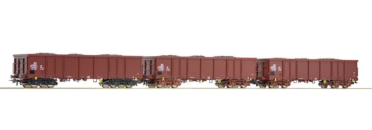 Roco 66043 HO 3-tlg.Set 2-achs. Om- Wagen mit Echtkohlebeladung