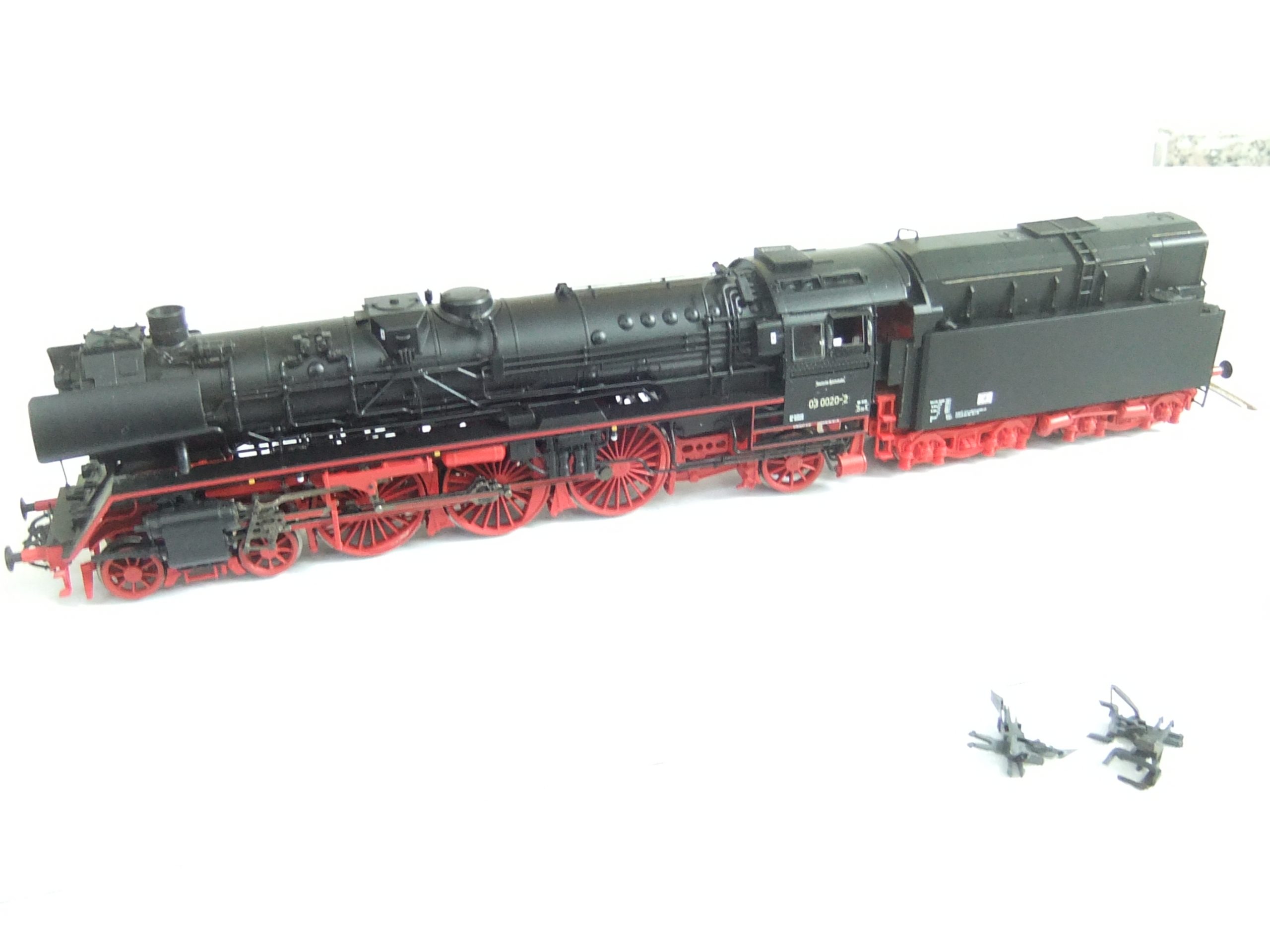 Neukonstruktion der BR 03.10 in der Ausführung mit Neubaukessel und Öltender und zusätzlichem Deckel auf dem rechten Windleitblech. Fein detailliert ausgeführtes Modell mit vielen separat angesetzten Steckteilen. Motor mit Schwungmasse, LED-Beleuchtung, feine Radsätze.Neukonstruktion mit Nachbildung des dritten Innenzylinders!