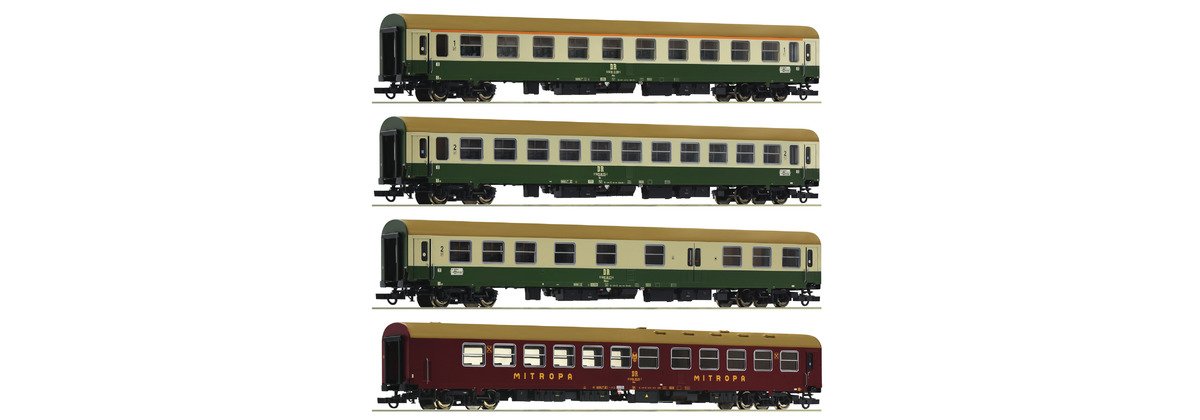 Roco 74189 HO Wagenset 2 bestehend aus vier Reisezugwagen des D 375 „Vindobona“ DR Ep.IV
